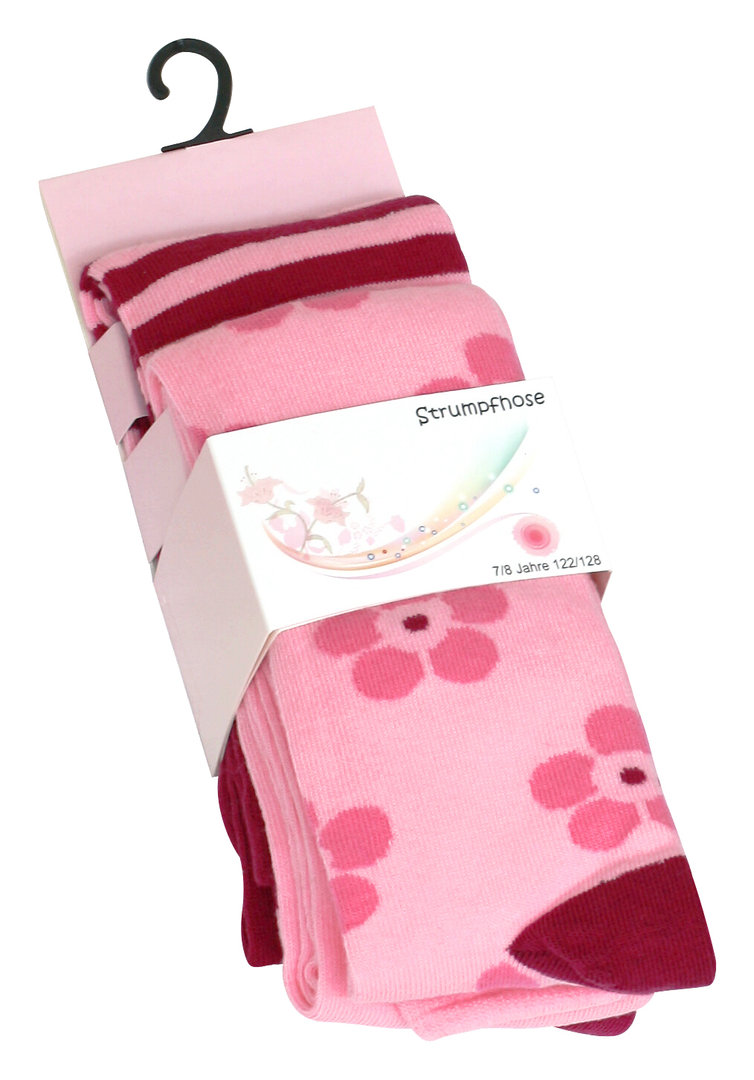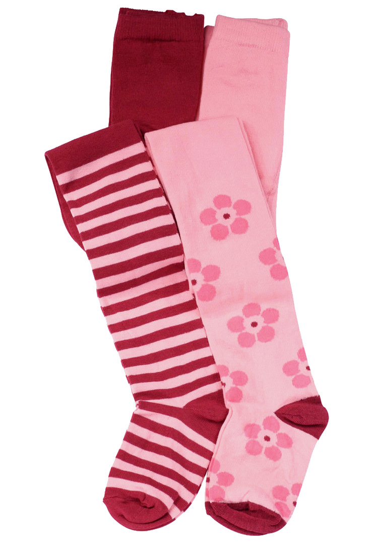 Strickstrumpfhose aus weichem Baumwoll-Elasthan-Mix | robust und strapazierfähig | glattes und gleichmäßiges Maschenbild | eingenähter Baumwoll-Zwickel im Schritt | angenehmes Tragegefühl durch komfortablen und elastischen Bund | Komfortnähte verhindern unangenehme Druckstellen | sehr hochwertig gearbeitet | klimaregulierende Eigenschaften durch den hohen Baumwollanteil | perfekte und faltenfreie Passform durch den Elasthananteil | Blümchen und Ringel in bordeaux, rosa und pink | 2 Stück in schöner "Wasserfall"-Schachtel mit Haken