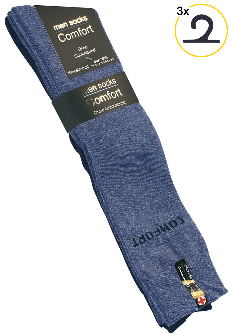 Herren Gesundheits-Kniestrümpfe "COMFORT" ohne Gummibund im 3er Pack