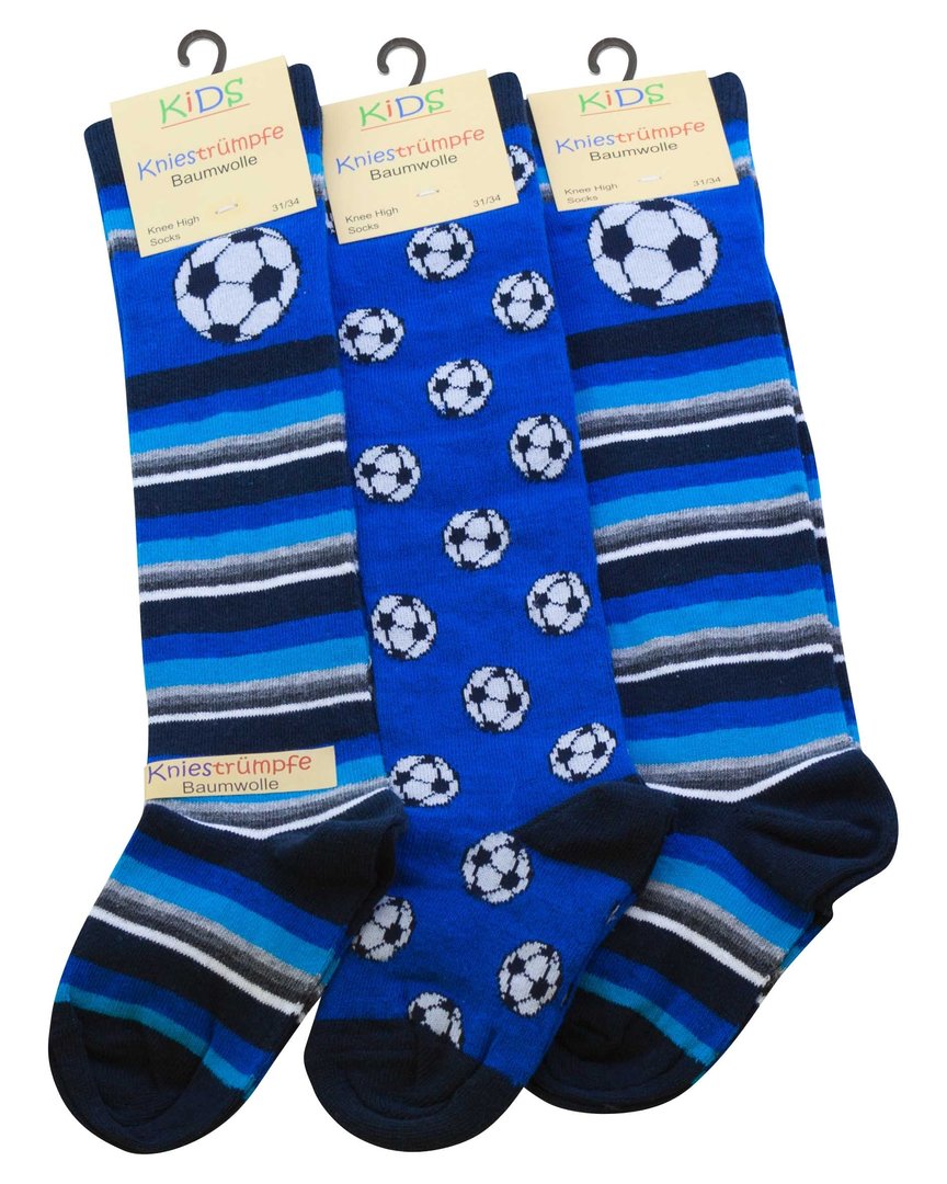 3er Pack Kinder Baumwoll Kniestrümpfe mit Fußball-Motiven