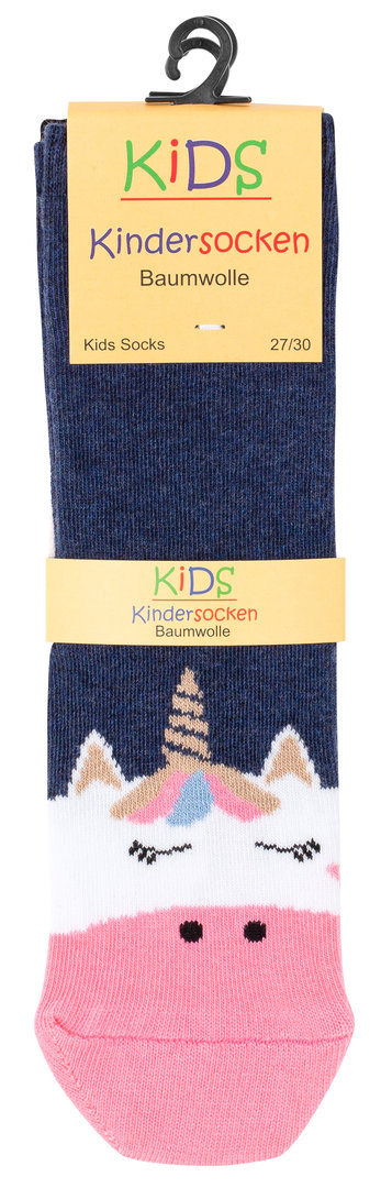 schöner und hautfreundlicher Baumwollmix | angenehmes Tragegefühl durch den weichen und druckfreien Komfortbund | flache und kaum spürbare Naht an den Zehen | klimaregulierend durch den hohen Baumwollanteil | perfekte und faltenfreie Passform durch den Elasthananteil | modische Kindersocken mit Einhornmotiven