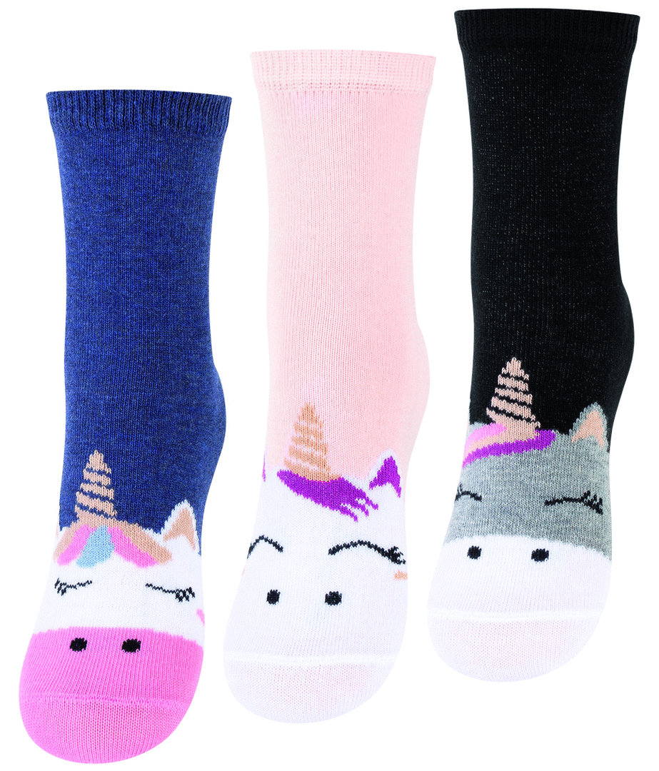 Kinder Baumwoll Socken mit Einhorn-Motiven im 3er Pack