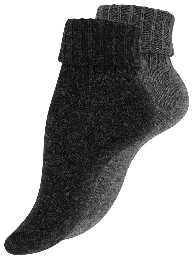 Damen Feinstrick-Wintersocken mit Alpakawolle und Umschlagrand im 2er Pack