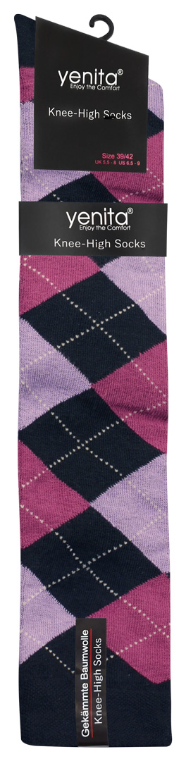 Damen Karo Kniestrümpfe 3er Pack - Baumwolle