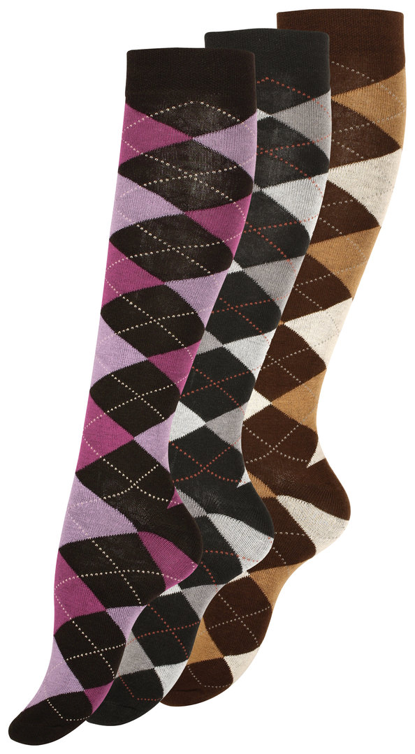 Damen Kniestrümpfe aus Baumwolle mit Rautenmuster im 3er Pack