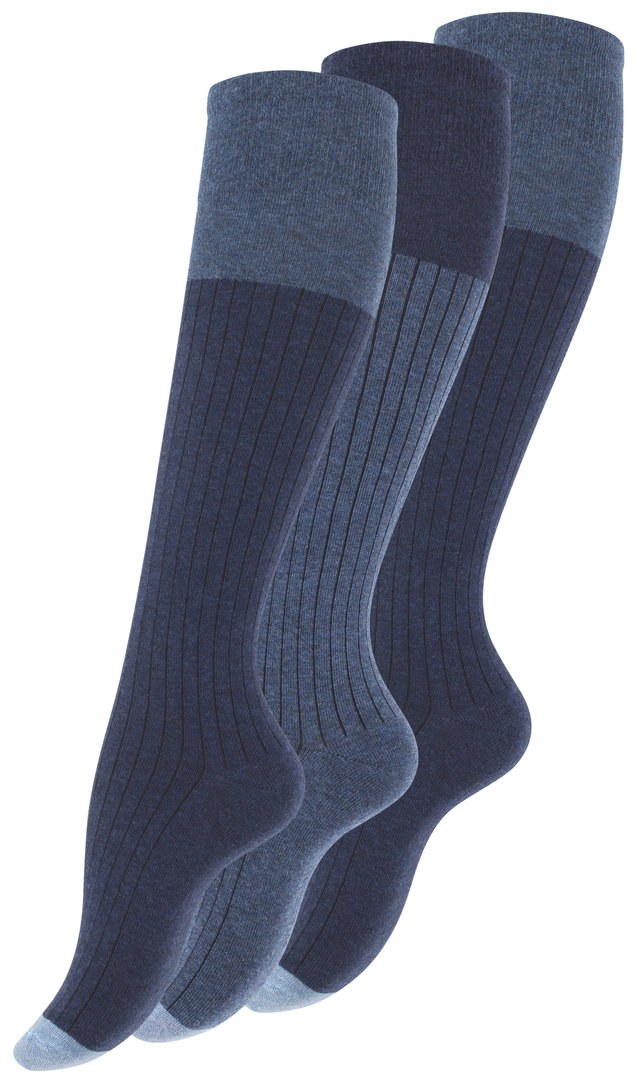 Damen Kniestrümpfe gerippt 3er Pack aus Baumwolle - Farbe wählbar