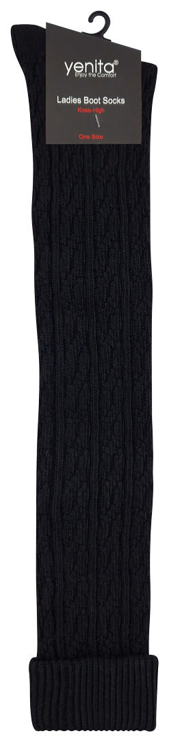 yenita® Damen Stiefel-Kniestrümpfe aus Baumwolle mit Zopfmuster im Einzelpack