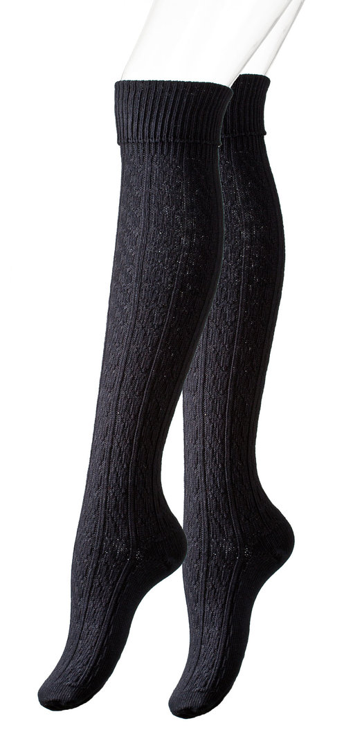 Damen Stiefelkniestrümpfe mit Zopfmuster und Umschlag - Farbe wählbar