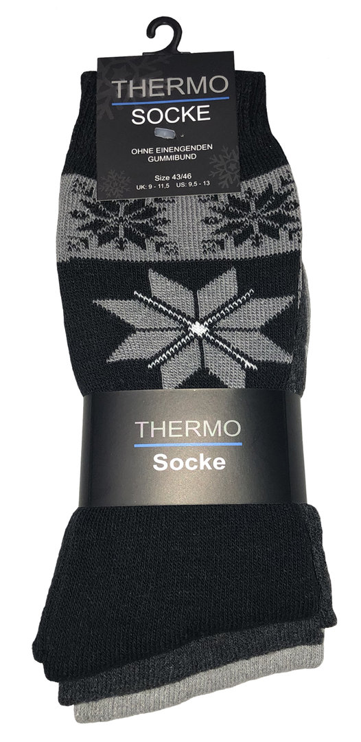 Herren 3er Pack Frottee Thermo Socken mit Eiskristallmuster