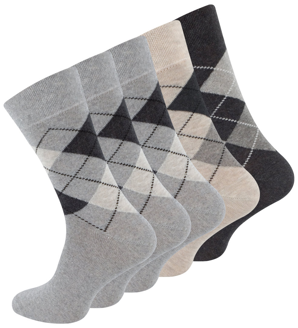 Herren Baumwoll Socken "Karo Classics" ohne Gummibund im 5er Pack