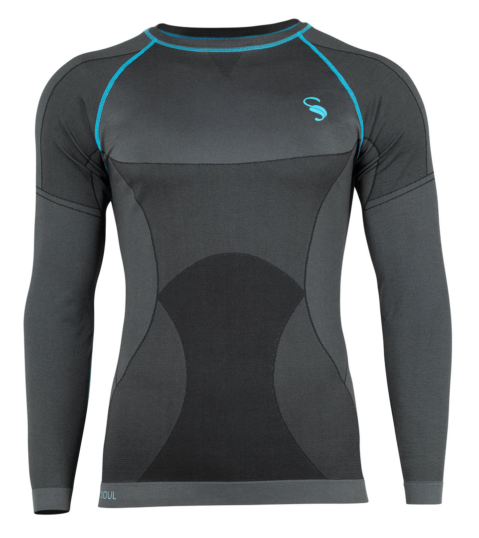 atmungsaktives Langarmshirt mit weichem Touch | dieses Shirt schützt die Muskulatur vor Kälte und vor Verletzungen in Folge des Auskühlens | die VERSA-Strickweise an speziellen Zonen unterstützt zu dem die Luftzirkulation ohne dabei Wärme zu verlieren | SEAMLESS-TECHNOLOGIE für ein minimum an Nähten | sehr leicht und anschmiegsam ("zweites Haut Gefühl") | schnelltrocknend | optimaler Feuchtigkeitstransport durch den intelligenten Materialmix | die hohe Passgenauigkeit garantiert einen perfekten Tragekomfort | sehr hochwertig gearbeitet | strapazierfähig | Kontrastnähte in türkis machen dieses Shirt zu einem echten Hingucker