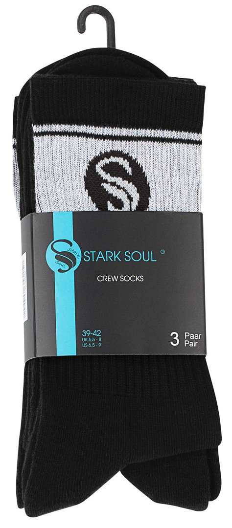 Markenqualität von Stark Soul® | weich gepolsterte Frotteesohle | langer Rippbund für perfekten Halt ohne einzuschneiden | Rippbündchen um den Mitelfuss verhindert das verdrehen der Socke bei schnellen Richtungswechseln | flache und weiche Zehennaht | optimale Klimakontrolle durch den hohen Baumwollanteil | faltenfreier Sitz durch Elasthan | sehr angenehmes und weiches Tragegefühl durch die gekämmte Baumwolle | Größenangabe in der Sohle | sehr hochwertige Sportsocken im schönen Retro Design