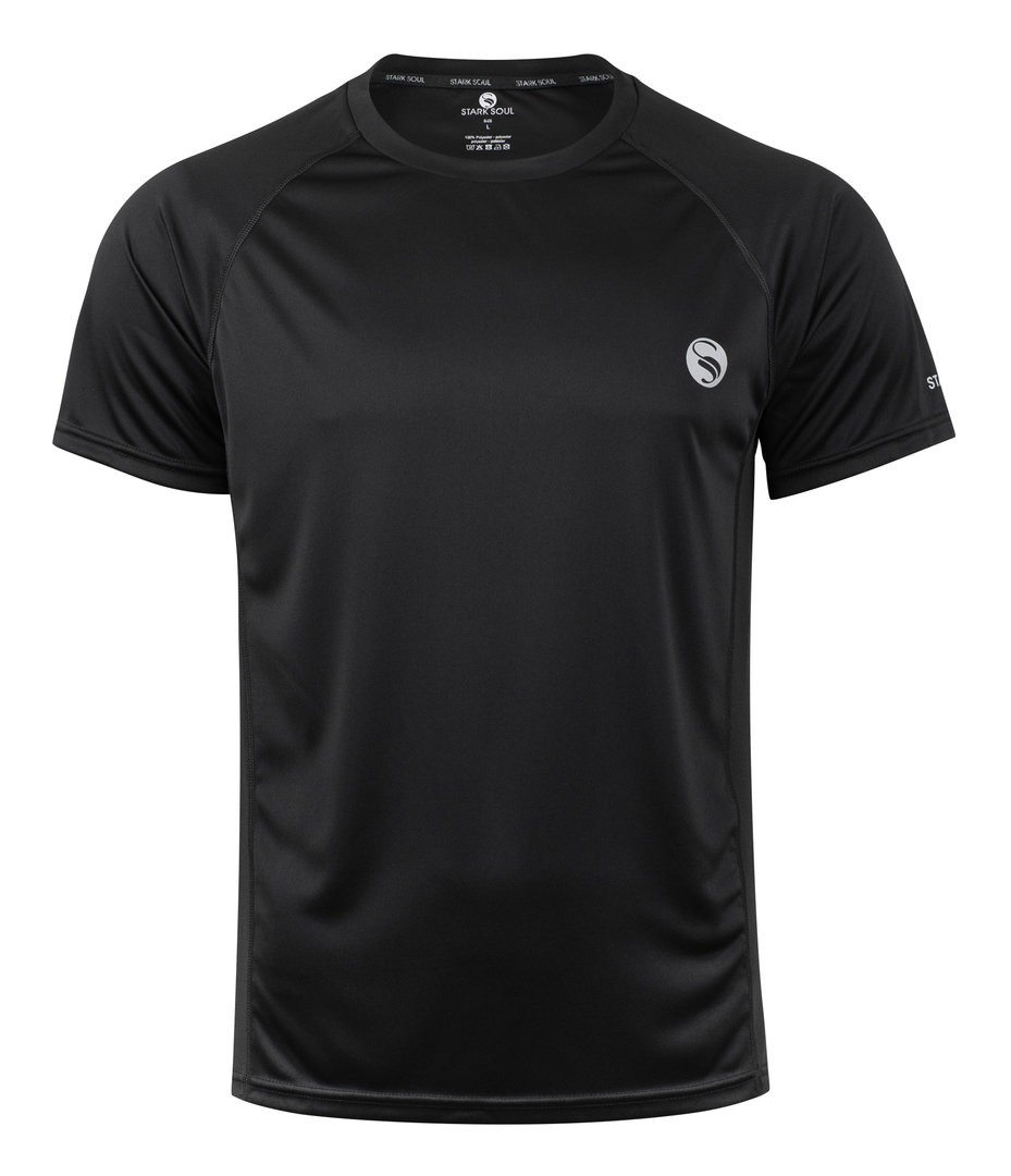 atmungsaktives Sport Shirt mit weichem Touch | luftige MESH-Einsätze and den Seiten | sehr leichtes und dünnes Material ("zweites Haut Gefühl") | schnelltrocknend | effektives Feuchtigkeitsmanagement | Rundhals-Ausschnitt mit Nackenband | sehr hochwertig gearbeitet | strapazierfähig | Stark Soul®-Logo auf der Brust und Stark Soul®-Schriftzug auf dem Ärmel in reflective silber | Nackenband mit Logo-Applikation