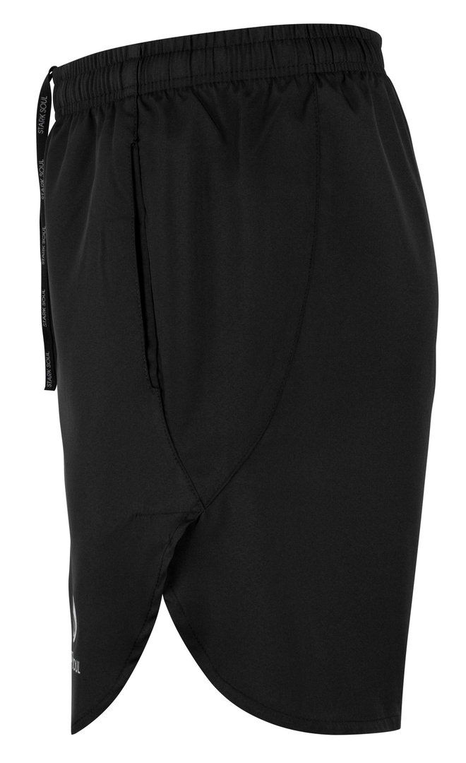 atmungsaktive Short mit weichem Touch | elastischer Taillenbund | Tunnelbund mit innenliegenden Kordeln für individuelle Passform | Kordel mit Markendetails | Delfin-Saum für mehr Bewegungsfreiheit | sehr leichtes und dünnes Material ("zweites Haut Gefühl") | schnelltrocknend | effektives Feuchtigkeitsmanagement | seitliche Einschubtaschen | Short ohne Innennetz | sehr hochwertig gearbeitet | strapazierfähig | Stark Soul® Logoprint in reflective silber auf dem Bein
