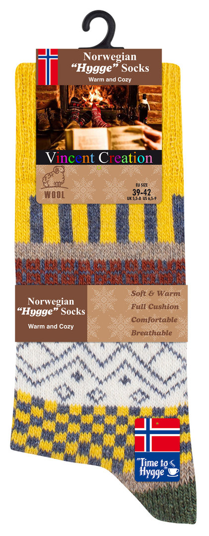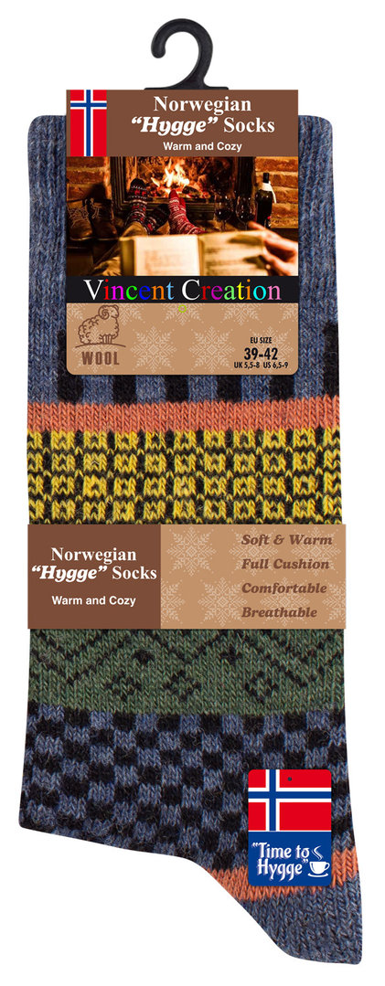 Unisex NORWEGER Stricksocken HYGGE mit Wolle und bunten Designs im Einzelpack