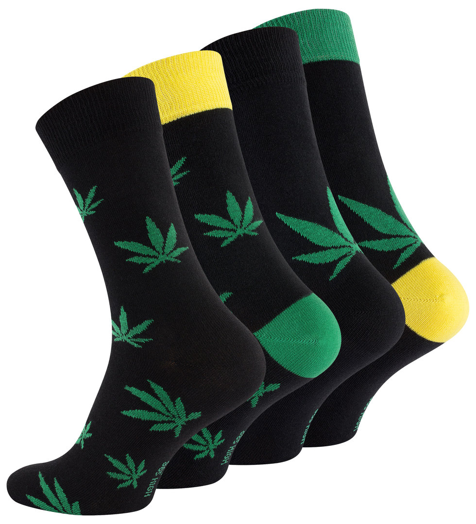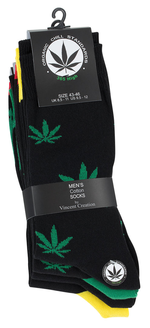 Vincent Creation® Herren Casual Socken "365 HIGH" mit Hanfblatt-Motiven im 4er Pack