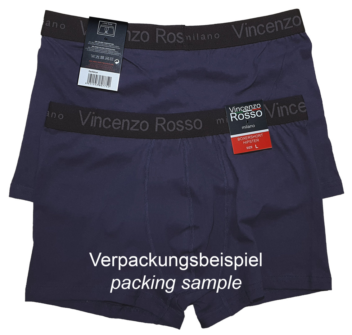 weicher Baumwoll-Elasthan-Mix | hautsympathisch | faltenfreier Sitz durch Elasthan | Short mit normal langem Beinansatz | die hohe Passgenauigkeit garantiert einen perfekten Tragekomfort | ohne Seitennähte | klimaregulierende Eigenschaften durch den hohen Baumwollanteil | Gummibund mit "VINCENZO ROSSO milano" - Schriftzug bestickt