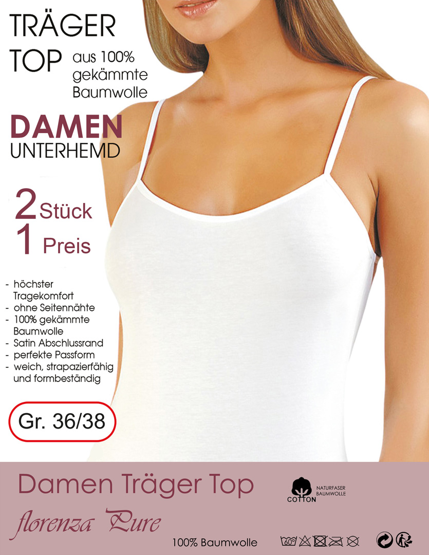 yenita® Damen Baumwoll Top mit schmalen Trägern und Satin-Abschlussbändchen im 2er Pack