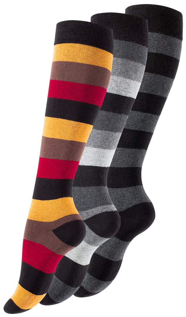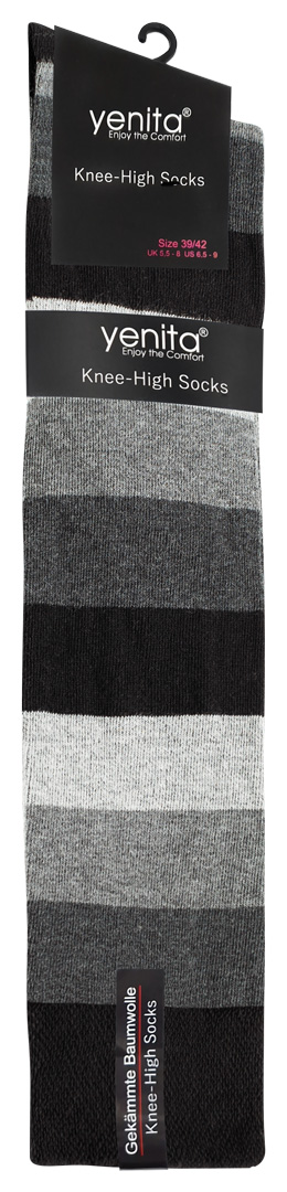 yenita® Damen Kniestrümpfe aus Baumwolle ohne Gummibund mit Blockringel im 3er Pack